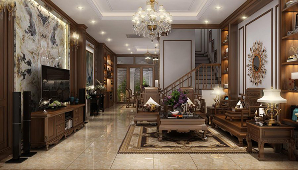 1. Bố trí phòng khách có cầu thang chuẩn phong thủy