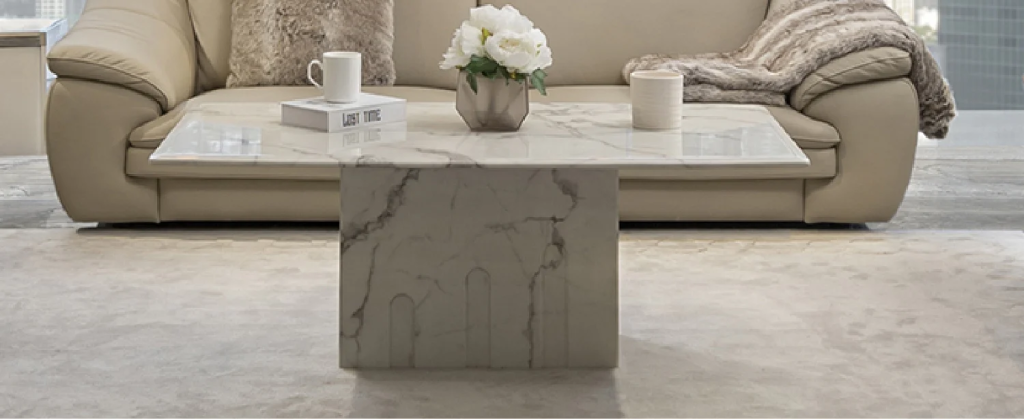 Bàn cafe FINLEY có thiết kế đơn giản nhưng bắt mắt với vân đá marble ẩn hiện tinh tế, màu sắc trang nhã đã mang đến không gian hiện đại cho phòng khách.