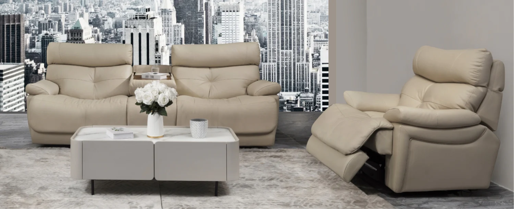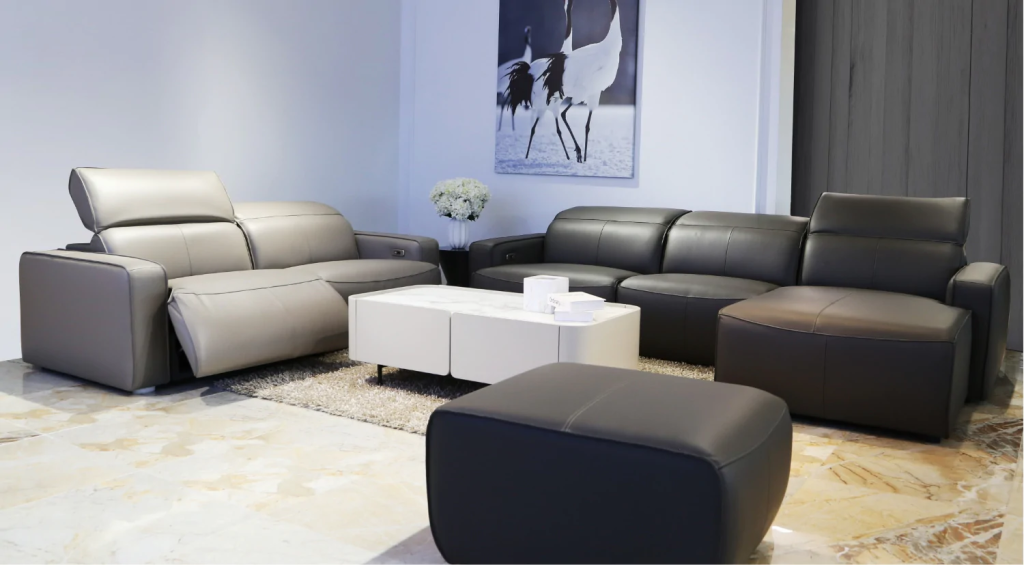 Sofa da DUBLIN da Top Grain của Ý, kết hợp bật điện linh hoạt và sạc điện thoại bằng dây USB mang lại tiện ích và thư giãn thoải mái tuyệt đối.