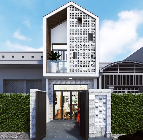Với thiết kế này, việc sử dụng ô gió cho những căn nhà phố 2 tầng rất được ưa chuộng. Không chỉ trở thành bức tường trang trí đẹp mắt, các ô gió còn giúp cho căn nhà thêm thoáng mát và bắt sáng tốt hơn.