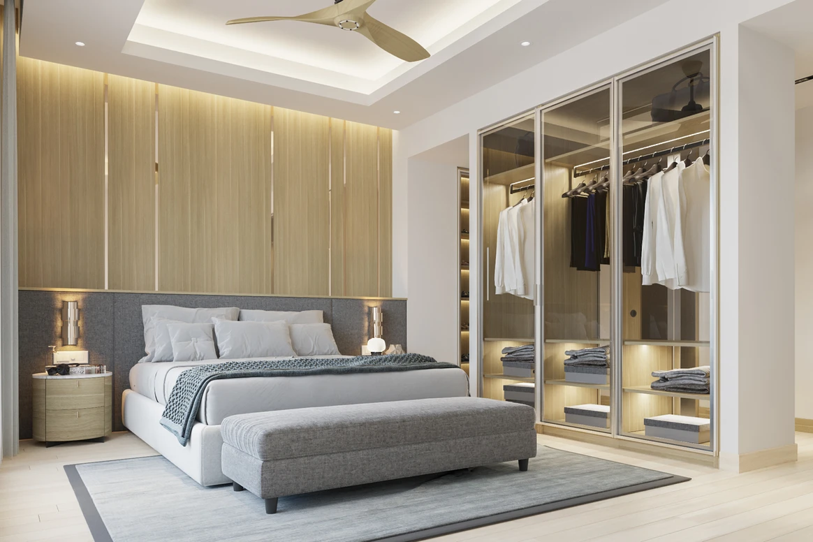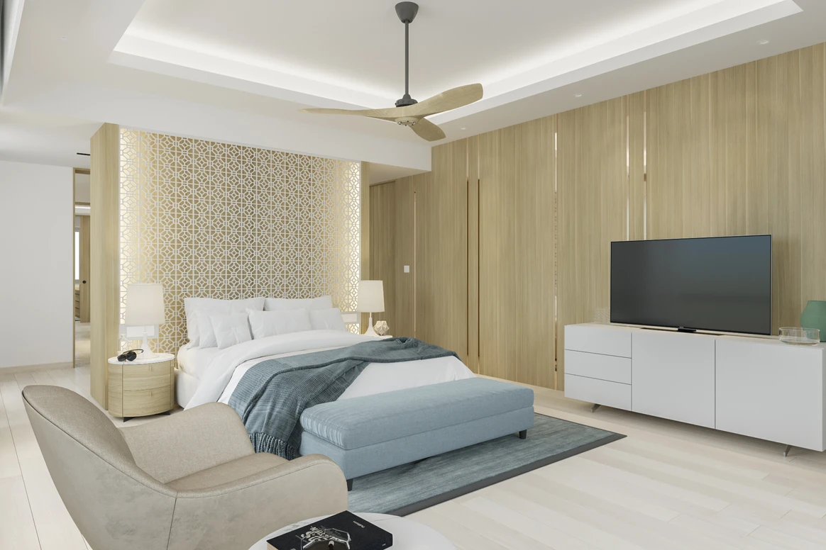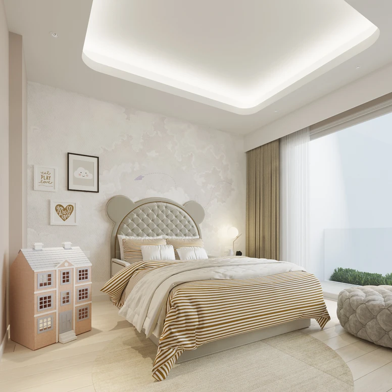 Không gian phòng ngủ được xem là nơi “nuôi dưỡng những giấc mơ”, NTK đã chọn tông màu sáng nhẹ nhàng, kết hợp với nội thất đơn giản, tường và sàn nhà giả vẫn gỗ tạo cảm giác ấm áp gần gũi. Tất cả nội thất phòng ngủ được thiết kế và sắp xếp để tận dụng tối đa hết công năng